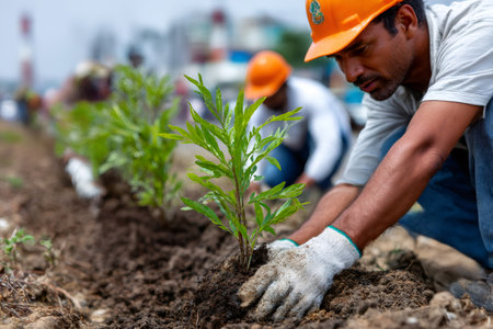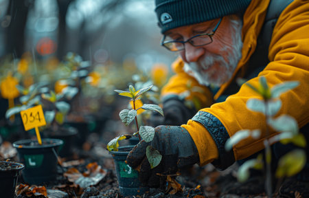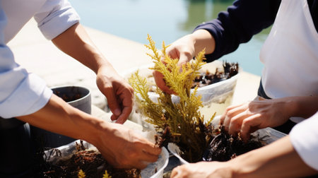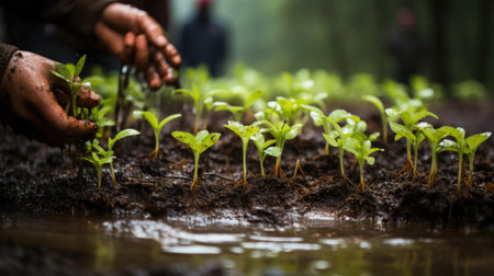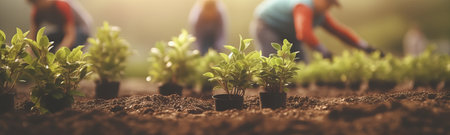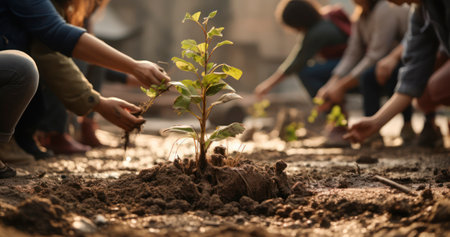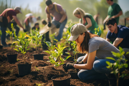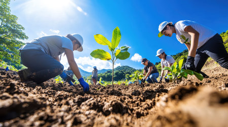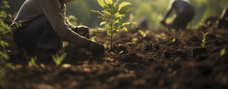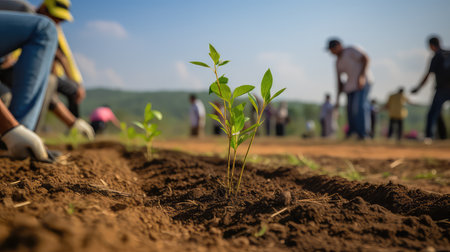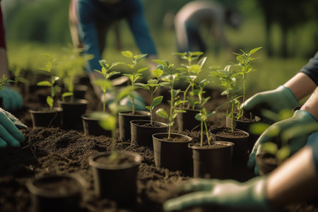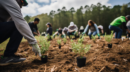 Growing Together: Dedicated Volunteers Planting Seedlings and Nurturing Nature's Promise, Generative AI