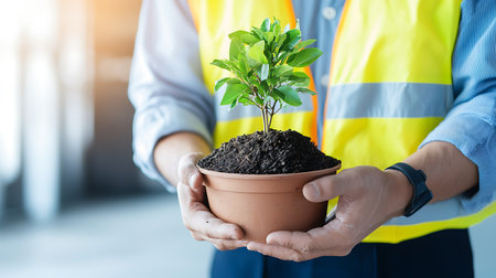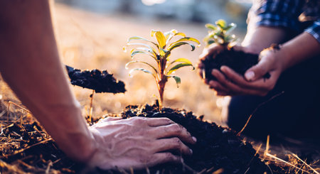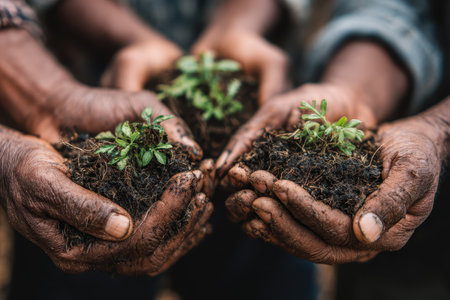 People holding young plants in their hands to promote environmental sustainability and collective responsibility for a better future