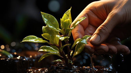 Closeup Volunteer hand planting potted plant. Generative AI