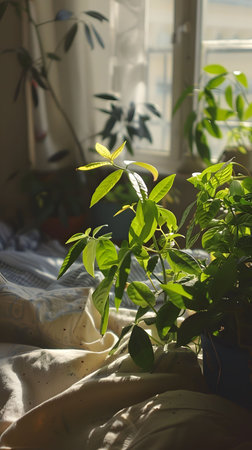 Bedroom plants basking in the morning sun, life thriving in quiet corners