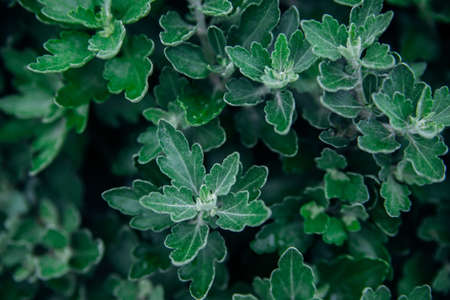 Background of chrysanthemum flower leaves. Beauty is in nature. Green carved leaves grow densely in the bush.