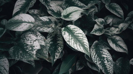 Dark Green Foliage Background. Lush Tropical Plant Leaves, Natural Texture, Abstract Nature Pattern.