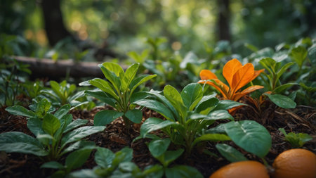 AI Generated. A lush palette of emerald greens earthy browns & rusty oranges reminisn'tcent of the everchanging foliage of spring