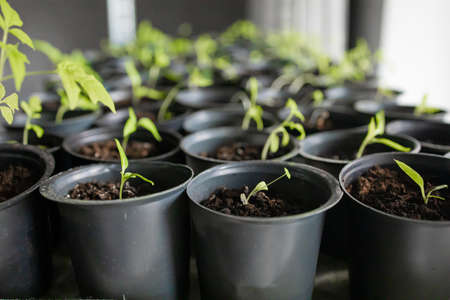 Solanum lycopersicum: tomato seedlings grow in a pot at home