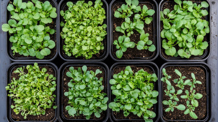 Vibrant potted plant seedlings in enriched soil, perfect for seamless transplant to garden beds