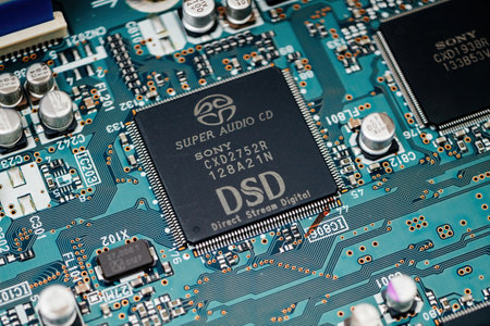 printed circuit Board with chips and radio components electronics