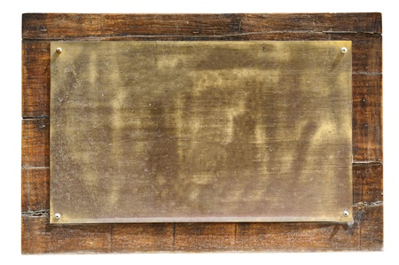 Brass on wood signs ; isolated on white background