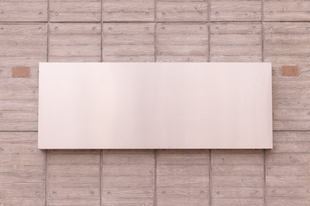 Wall mockup with blank white empty signage plate ready for your artwork sign with mock up company name on facade