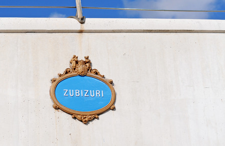 typical vintage street sign in bilbao, spain, basque country on the famous pedestrian zubizuri bridge
