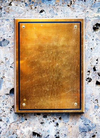 blank gold copper wall brass metal sign board on office entrance nameboard