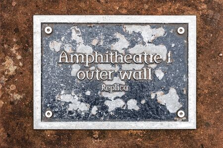 A sign that say Amphitheatre 1 Outer Wall Replica from the Roman times
