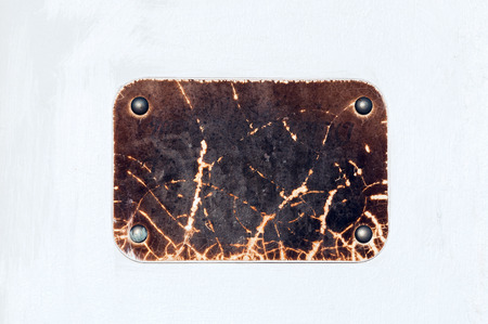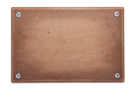 vintage screwed metal plaque, isolated