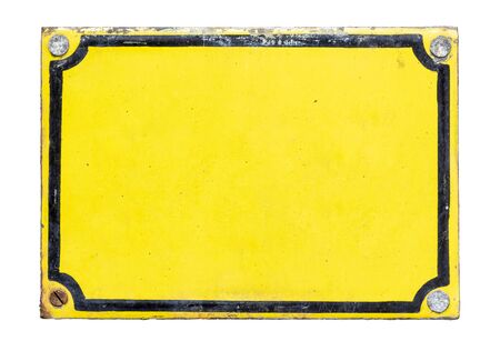 Old, metal, yellow plaque isolated on white background