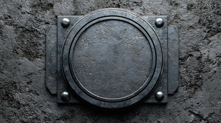 A circular metallic hatch cover is positioned on a rough concrete surface, showing its industrial design and sturdy construction in natural light.