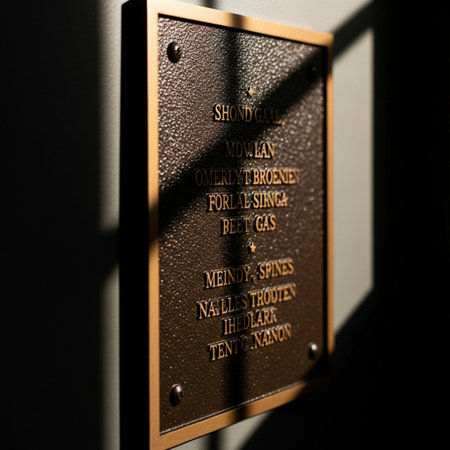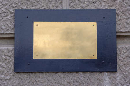 Memorial Gold Plaque Sign at Building Wall Copy Space