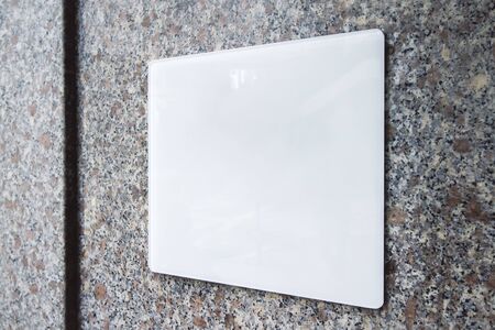 Blank Street plate on building wall of Vienna in Austria. Empty name sign board on house in Innere Stadt in Wiena. Place for copy space. Concept and architecture. Texture and background. Blue color