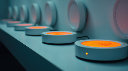 Connected environmental sensors monitoring air quality, temperature, and humidity levels.