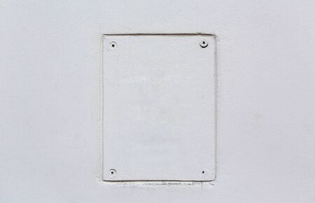 Vintage grunge square metal rusty plate of number of street address with number. Close up, brand.