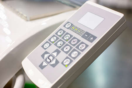 Modern control panel of dentist machine for treatment teeth. Dentist workplace in clinic.