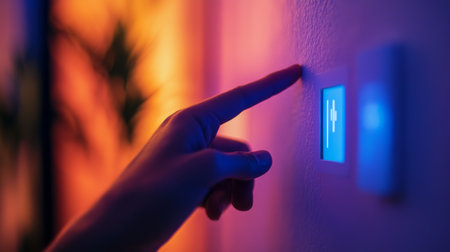 Smart light switches with glowing indicators on wall in cozy ambiance. That the image is generated using AI.