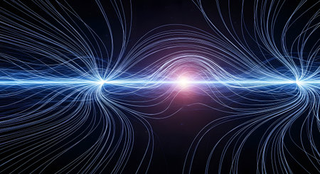 A visually striking representation of magnetic field lines converging and diverging around a central point, creating a dynamic and intricate pattern against a dark background.