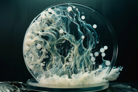 Explore the unseen with this captivating stock illustration capturing bacteria and virus cells in a petri dish. Generative AI brings the microscopic to life.