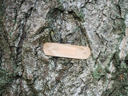 Three long medical beige antiseptic plaster for wood covering.