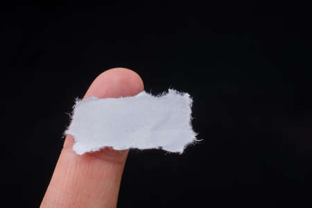 A closeup shot of a finger holding a blank surface on an isolated background