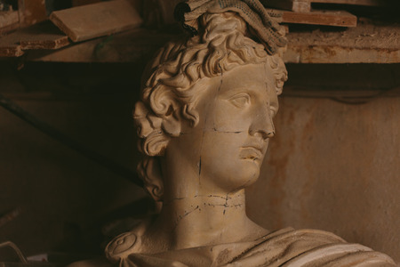 old abandoned Plaster head of Apollo Belvedere