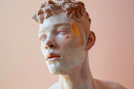 Sculpture, architecture and people concept - Portrait of a young man with clay mask
