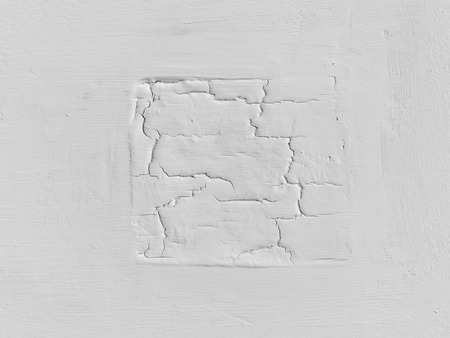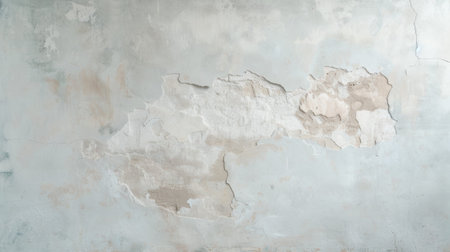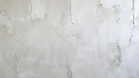 This image features a detailed view of a textured surface showcasing cracked white plaster with rough areas and visible imperfections, perfect for artistic and architectural design projects.