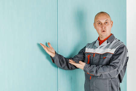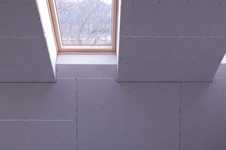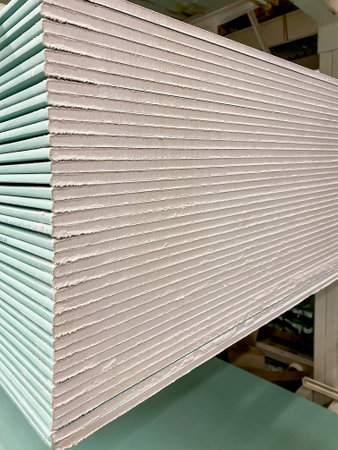 Professional Drywall Gypsum Board sheet. Nature Gypsum cement material for ceiling and walls. Modern Eco-friendly building material.