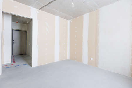 Russia, Moscow- May 21, 2019: interior room apartment. standard repair decoration. rough repair for self-finishing. finishing stage of construction