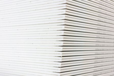 The stack of gypsum board preparing for construction. Gypsum plasterboard in the pack.