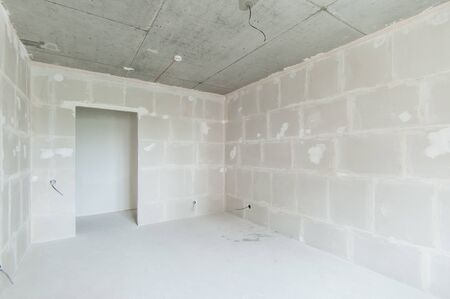 Newly constructed house walls are plasterboard drywall ready for plastering