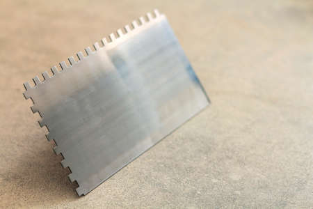 Construction notched trowel is a tool for tiles installation work