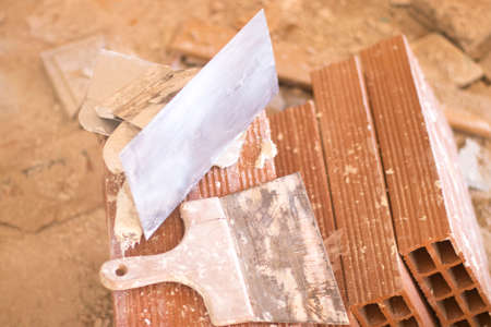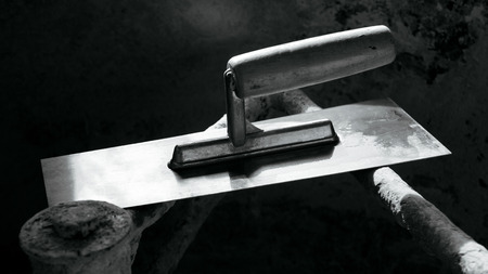 Plastering trowel on construction building site