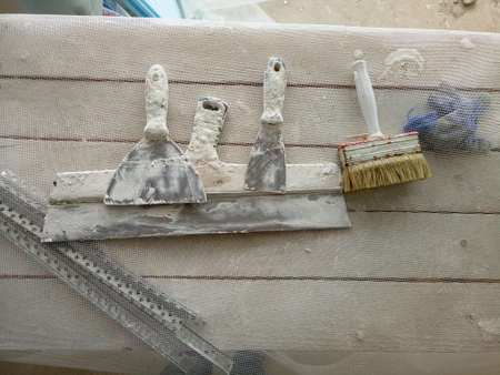 Set of assorted plaster trowel tools and spatula. Construction tools