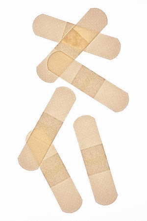 Bandaids on multiple small injuries. Copy Space.