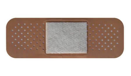 Brown textile sticky patch for wounds on the skin of the body, white background