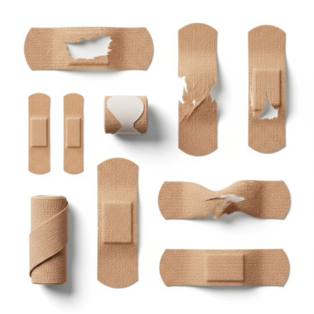 Medical adhesive plasters on a white background