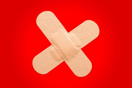 First aid plasters against a red background