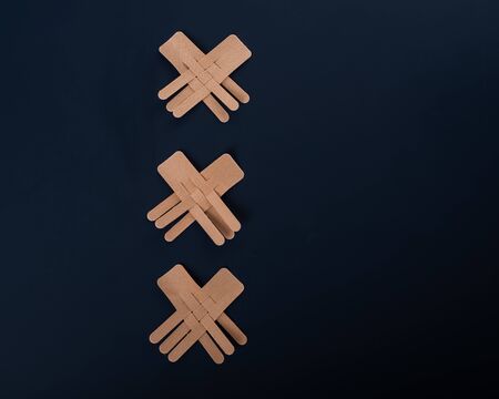 Three long medical beige antiseptic plaster for wood covering.