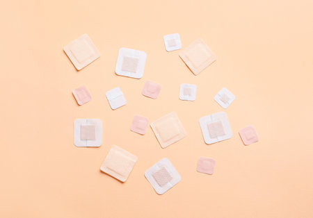 Elastic medical plasters on beige background