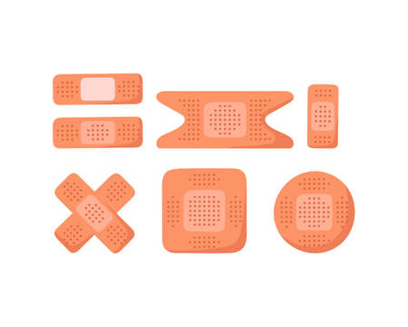 Set of medicine plaster isolated on white background. First medical aid. Medical bandage.