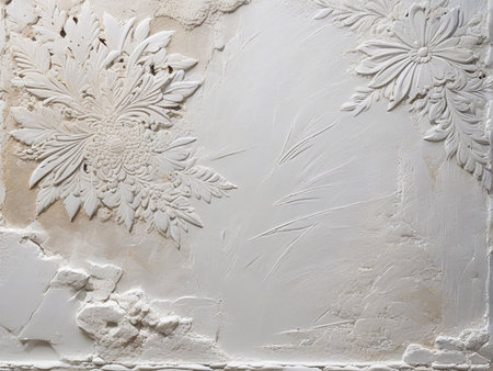 This image features a beautifully textured white wall adorned with elegant moldings, ideal for interior design inspiration and home decor projects.