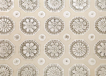 Elegant ceiling design featuring intricate patterns and ornate details in a light tone, ideal for showcasing craftsmanship and enhancing interior spaces.