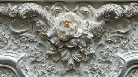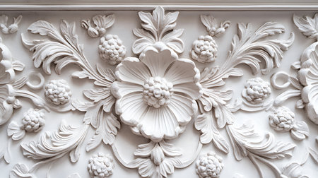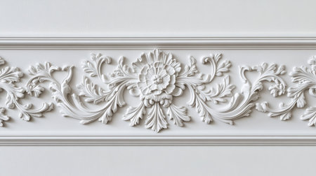 This ornate white wall molding features intricate floral designs, showcasing exquisite craftsmanship and elegance, perfect for enhancing interior aesthetics.