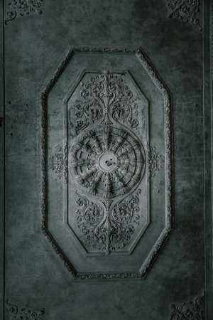 Beautiful pattern on the stone ceiling in an abandoned manor house. Antique stone ceiling.