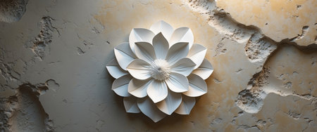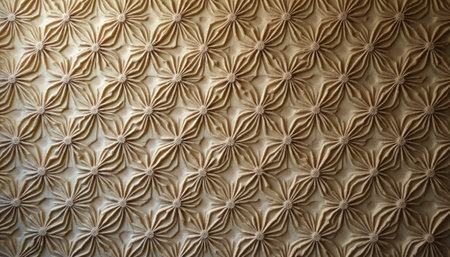 This image showcases a stunning wall adorned with a repetitive pattern of intricately designed floral motifs, creating a sense of depth and elegance. The warm beige tones and soft shadows enhance the three-dimensional effect, making it a perfect backdrop for various interior styles.